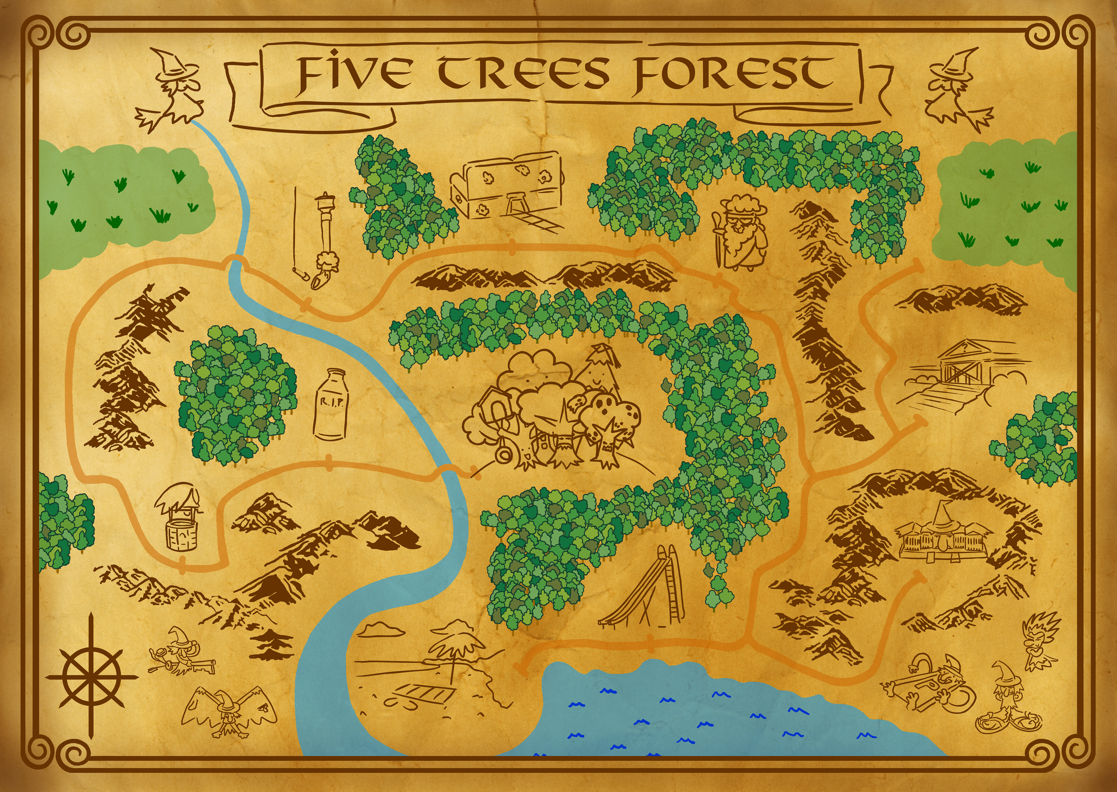 I was commissioned to produce illustrations for a mobile phone based, site specific game/installation, called ‘Five Trees Forest’, based at the BBC’s White City Site.